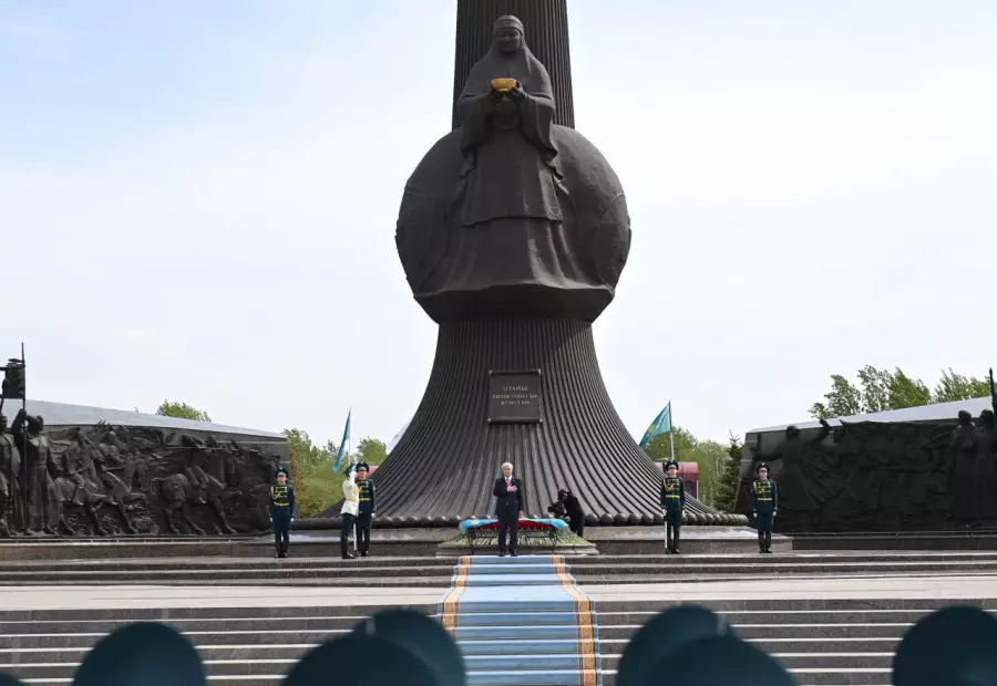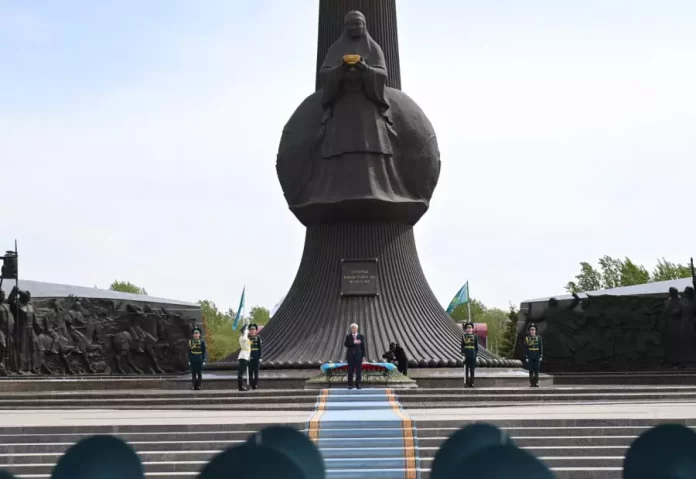 Мемлекет басшысы Ұлы Жеңістің 80 жылдығына орай елордадағы «Отан Ана» монументіне гүл шоғын қойып, қазақстандық майдангерлердің рухына тағзым етті.
