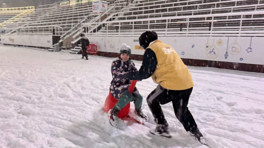 Алматы қаласы Волонтерлер фронт-офисі Жаңа жыл мерекесі қарсаңында, балаларды сергіту және олармен қызықты уақыт өткізу мақсатында «Медеу» мұз айдынында тегін коньки тебу кешін ұйымдастырды. Шараға «Жанұя» жетім балаларға арналған мамандандырылған кешеннің 70-ке жуық тәрбиеленушілері қатысты. Волонтерлер балаларға «Медеу» мұз айдынына тегін кірумен қатар, тіскебасарлар мен сусындар ұсынды. Ұйымдастырушылардың айтуынша балаларға арналған осындай шара алдағы уақытта жалғасын табады.