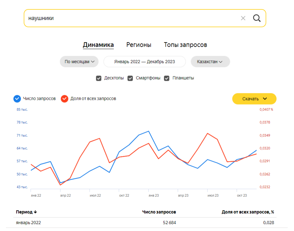Іздеу сұраныстарын талдауға арналған Яндекс Вордстат сервисін жарты миллионнан артық қазақстандық меңгеріп алды