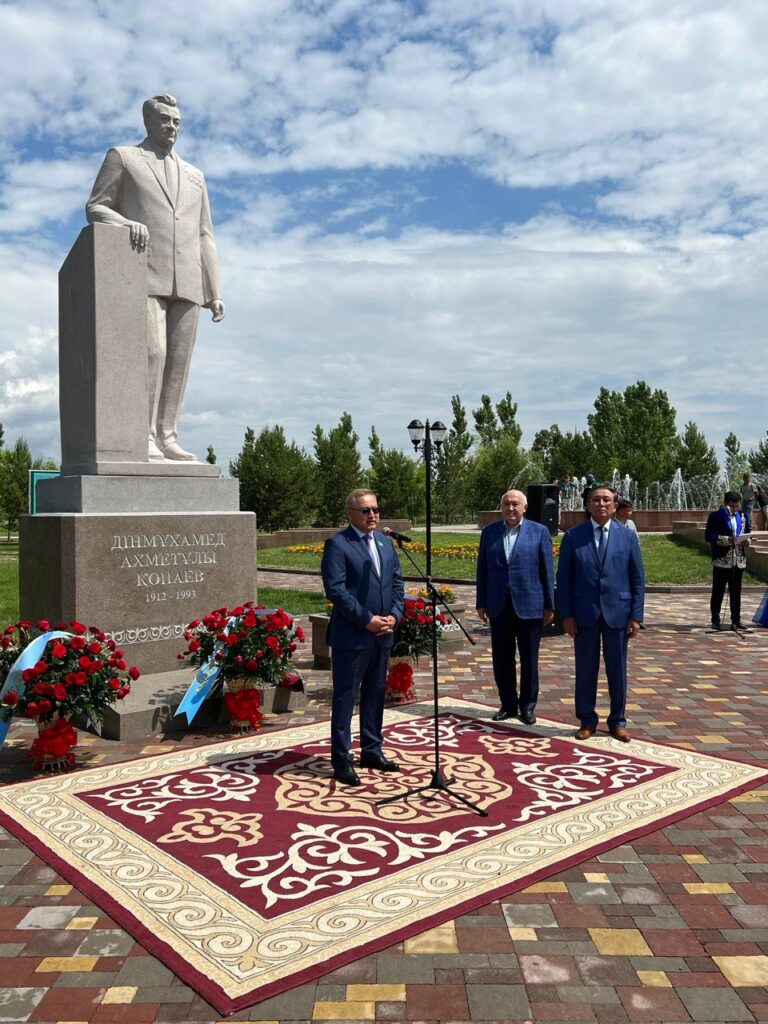 — Халқымыздың біртуар перзенті, мемлекет және қоғам қайраткері Дінмұхамед Ахметұлы Қонаевтың туғанына биыл 110 жыл. Мемлекет басшысы Қасым-Жомарт Кемелұлының Жарлығымен Қапшағай қаласына Қонаевтың есімі берілді. Бүгін, міне, қазақтың аяулы перзентіне үлкен құрмет көрсетіліп, еңселі ескерткіш орнатылды. Ірі тұлғалардың ерен еңбектерін үлгі етіп, ұлыларды ұлықтау – басты парызымыз. Дінмұхамед Қонаевтың бойындағы ұлтжандылық жастарға жұғысты болсын! Қазақтың дара тұлғасының ескерткіші құтты болсын! – деген Қанат Бозымбаев ескерткіш авторлары мен Халықаралық «Дінмұхамед Қонаев қорына» алғыс айтты.