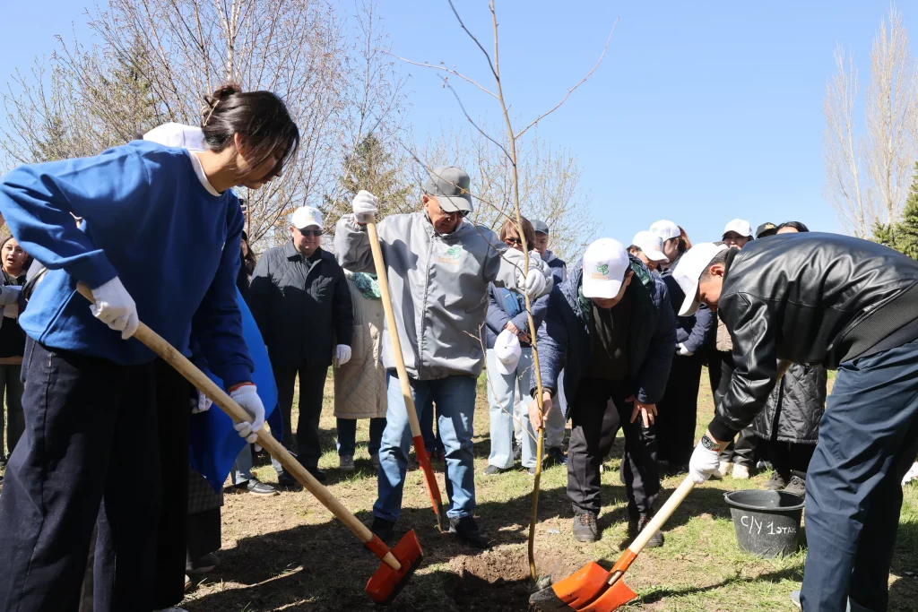 Ректор студенттер мен университет қызметкерлерімен бірге ағаш көшеттерін отырғызып, қоршаған ортаға ұқыпты қараудың маңызын жеке үлгісімен көрсетті.