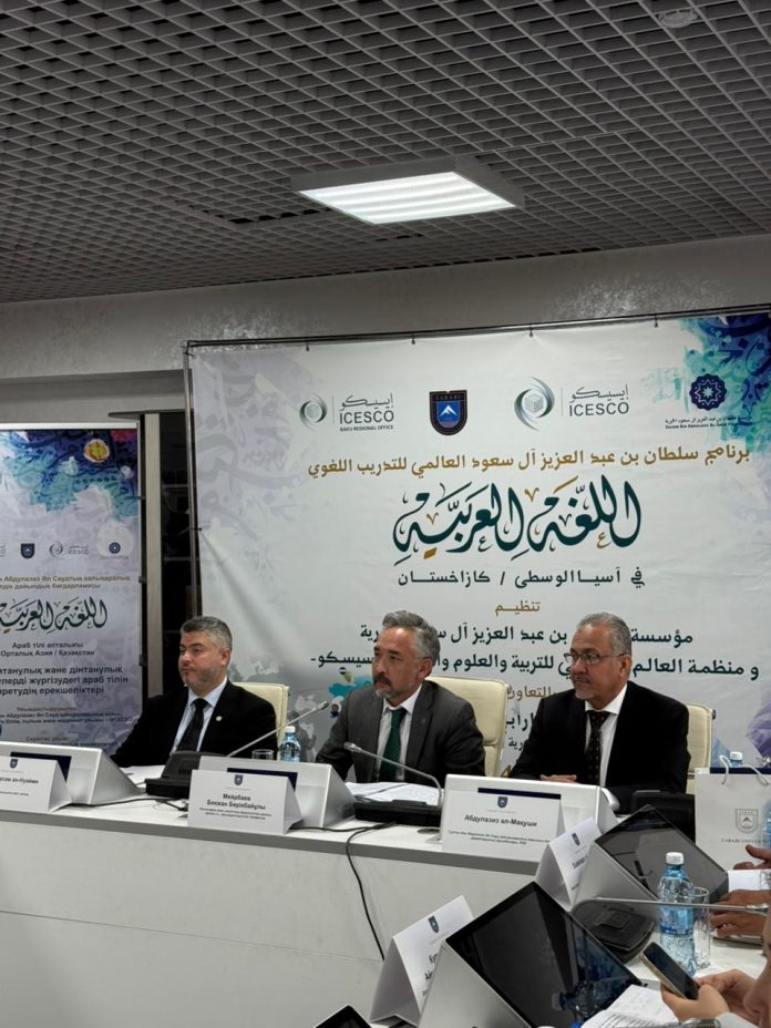 В своем выступлении он подчеркнул: – Саудовская Аравия занимает особое место в координации многих проектов, направленных на гуманитарные науки. Данный проект был реализован при участии множества государственных и частных сторон. Слава Аллаху, этот Фонд на протяжении многих лет предлагает программы для преподавателей и студентов, для которых арабский язык не является родным. Основная причина внимания к такому делу заключается в том, что арабский язык является связующим звеном между цивилизованными государствами, и мы придаем этому большое значение. Первое решение по поводу программ для лиц, не являющихся носителями арабского языка, было принято в Париже. В связи с этим наш Фонд, разрабатывая программы, ставил цель придерживаться определенной методики для изучающих арабский язык. Кроме того, мы совершенствуем образование в соответствии с требованиями ЮНЕСКО. Мы нацелены на реализацию образовательных программ для стран Центральной Азии, – сказал Абдулазиз аль-Макуши. Представитель Организации ИСЕСКО, главный координатор данного мероприятия и партнер кафедры религиоведения и культурологии, доктор Анас Хусам ан-Нуайми, отметил: – Выступая от имени Генерального директора Организации по вопросам образования, науки и культуры исламского мира – ИСЕСКО, Его Превосходительства доктора Салема бин Мухаммада аль-Малика, я выражаю нашу благодарность и признательность Республике Казахстан, а также Казахскому национальному университету им. аль-Фараби за организацию этой исключительной программы – «Международной программы языковой подготовки имени Султана бин Абдулазиза Аль Сауда» – в сотрудничестве с ИСЕСКО и Благотворительным фондом Султана бин Абдулазиза Аль Сауда. Сегодня мы являемся свидетелями начала третьего этапа этой программы в Казахстане. Мы выражаем сердечную благодарность всем, кто внес вклад в успешное проведение этой благой, полезной и содержательной программы. Мы надеемся, что эта программа станет благим началом для нового сотрудничества в области преподавания и использования арабского языка в будущем. Ведь образовательный процесс не будет полным без преподавателя, учащегося и научно-методически обоснованного учебного содержания. Программа основана на коммуникативном подходе к обучению арабскому языку и полностью охватывает четыре языковых навыка: аудирование, говорение, чтение и письмо. Эта методика получила высокую оценку на двух предыдущих этапах, проведенных в Саудовской Аравии и других странах, включая Центральную Азию. Мы надеемся, что эта благая инициатива будет продолжена и в Казахстане, – сказал представитель Организации ИСЕСКО. Организация ИСЕСКО, объединяющая 54 государства-члена, всегда уделяла особое внимание арабскому языку. Организация реализовала множество программ и научно-просветительских проектов как самостоятельно, так и на основе международного партнерства, для сохранения, развития и популяризации арабского языка на мировом уровне. За последние сорок лет ИСЕСКО организовала более 270 семинаров и практических курсов для преподавателей, обучающих арабскому языку как иностранному, самостоятельно или в сотрудничестве с заинтересованными учреждениями. Из этих программ извлекли пользу более восьми тысяч преподавателей и специалистов.