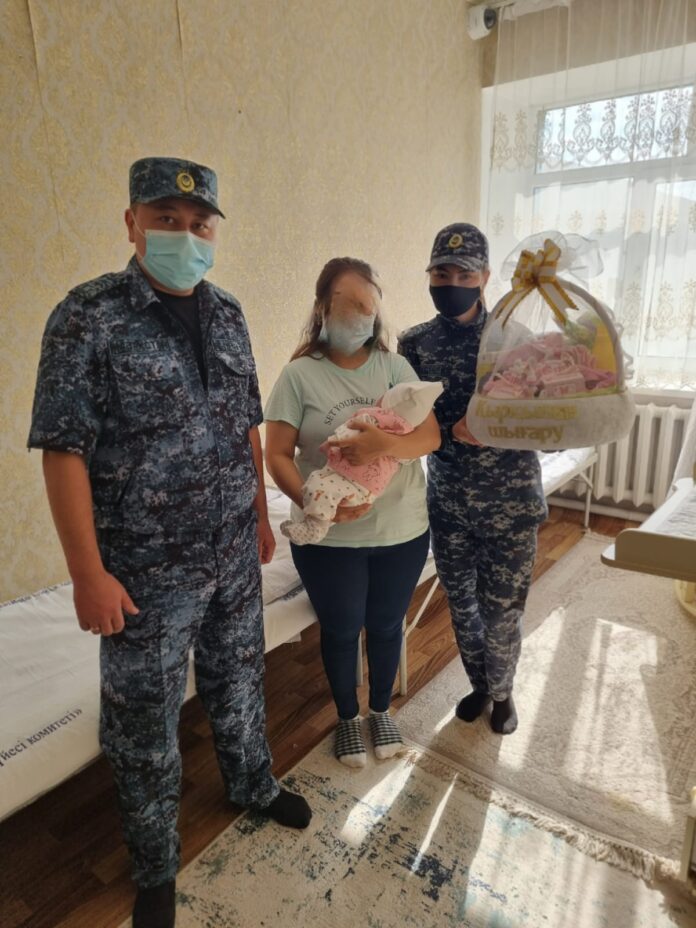 НҰР-СҰЛТАН қаласы бойынша ҚАЖ Департаменті ЕЦ-166/10 қауіпсіздігі барынша төмен мекемесінде маусым айының аяғында жүкті болып келген және осы мекемеде жазасын өтеп жатқан сотталған Е., сәбиінің қырқынан шығуына байланысты Бақылаушылар қызметі бөлімінің бастығы әділет майоры Н.Б.Айтбековтың ұйымдастырумен сәбиге көмек ретінде қайырымдылық іс-шара өткізіліп, сәбиге алғашқы керек заттары табысталды.