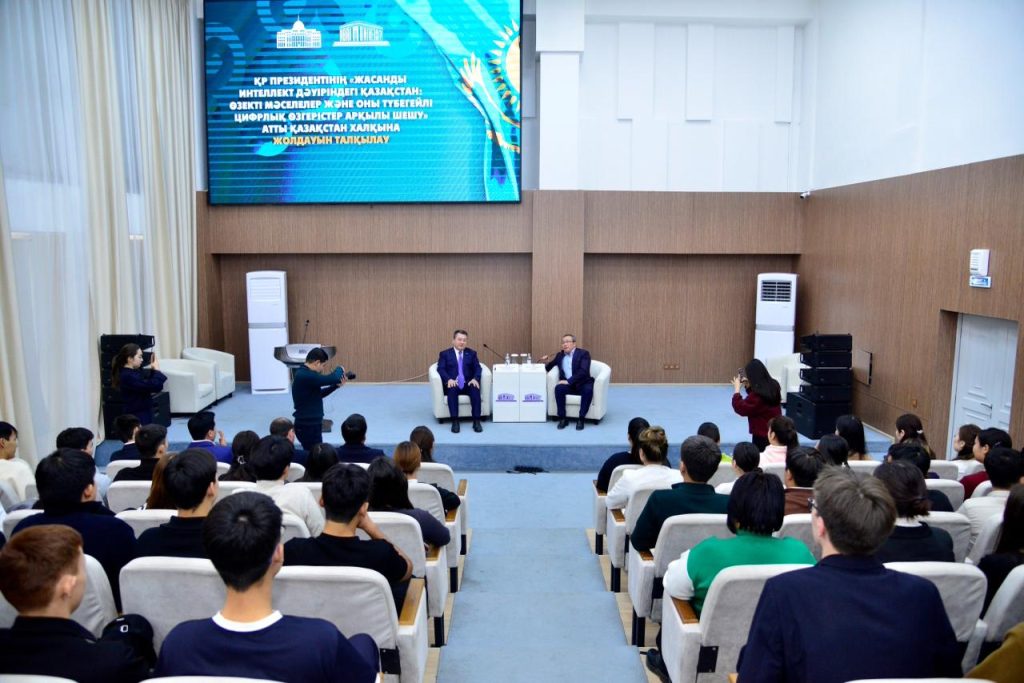 Қазір қоғамды жасанды интеллект (ЖИ) мәселелеріне байланысты талай-талай толғамды ойлар әрі-сәрі күйге түсіріп жүргені белгілі. Оны Президент кеңесшісі жоққа шығарып, жасанды зерде тек құрал болуы керек екенін еске салды. Бұл өз кезегінде студенттер тарапынан зор қызығушылық туындатты. Олар болашақ педагог ретінде «ЖИ-мұғаліммен қандай да бір бәсекелестік туындауы мүмкін бе?» деген өзекжарды сұрақтарын қойды. Оған қатысты «Әрине, заманауи педагогтың білігі жоғары болғаны жөн, бірақ ЖИ ұстаз беретін адами ілімді ешқашан бере алмайды» деген жауап берілді.
