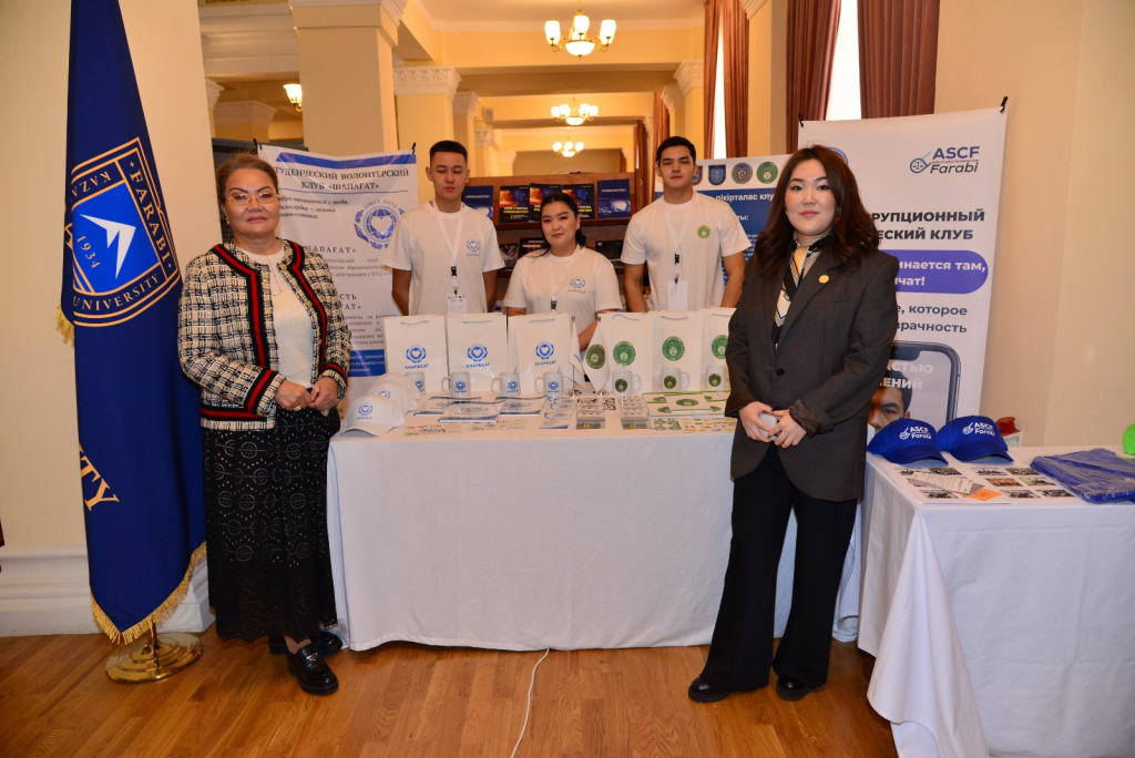 20 октября 2025 года студенческий волонтёрский клуб «Шапағат» Юридического факультета Казахского национального университета им. аль-Фараби представил свои проекты на Выставке национальных и зарубежных инициатив по профилактике правонарушений «Kazakhstan Prevention Days», организованной Министерством внутренних дел Республики Казахстан совместно с Германской организацией международного сотрудничества (GIZ – Deutsche Gesellschaft für Internationale Zusammenarbeit).