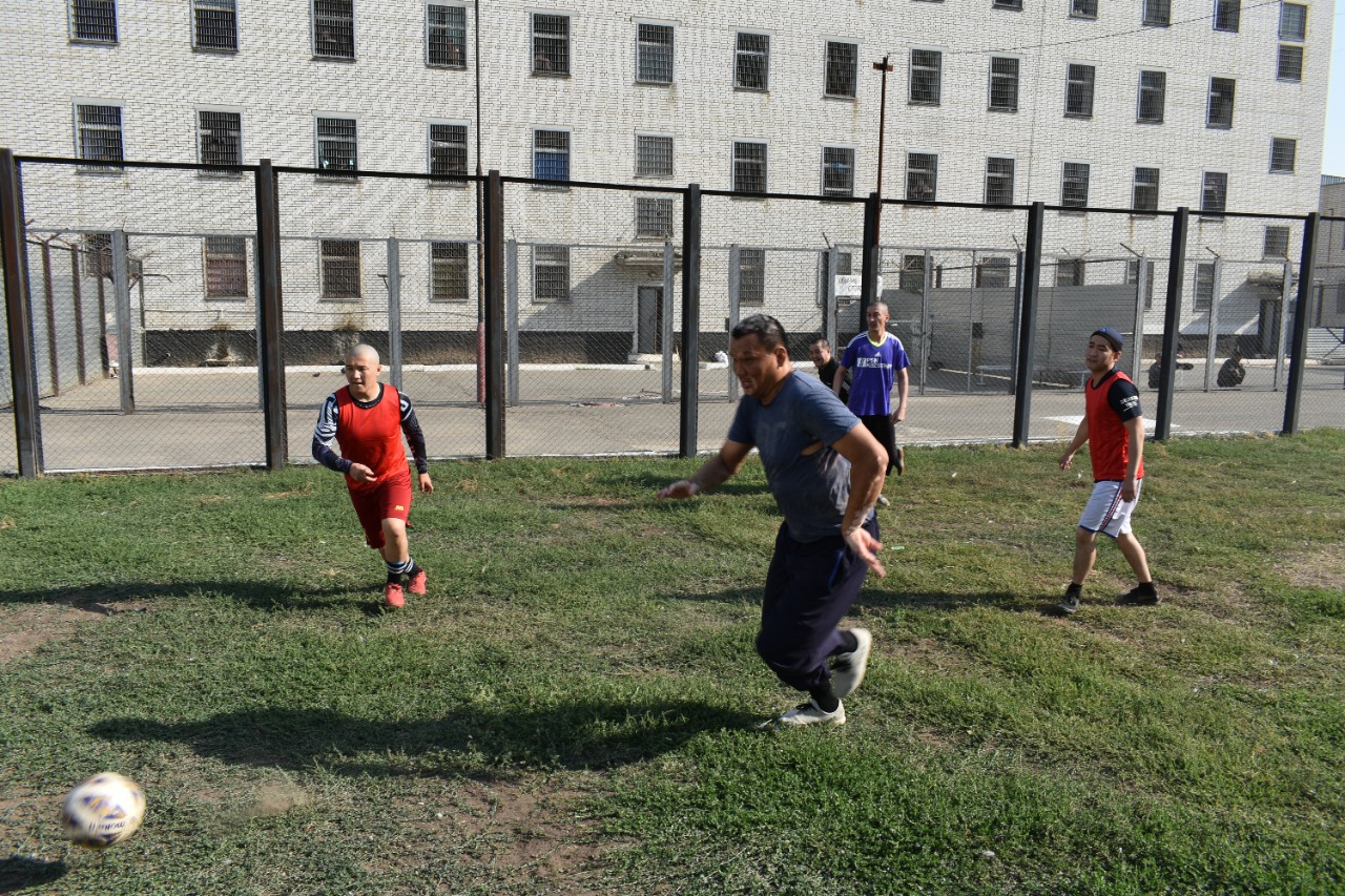 На футбольном поле колонии максимальной безопасности Уральска состоялся турнир по мини- футболу среди осужденных. За звание лучших боролись шесть отрядов. Соревнование открыл заместитель начальника учреждения по воспитательной работе Рафаэль Карасаевич.