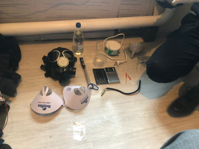 Сотрудниками Управления полиции г.Петропавловска ведётся досудебное расследование по факту производства и сбыта синтетических наркотиков. Подозреваемый — 20-летний горожанин. Он был задержан в мае. При молодом человеке находились 8 полимерных свёртков с веществом растительного происхождения. Ещё 52 свёртка и две ёмкости с жидким веществом были изъяты по месту жительства по ул. Халтурина. Экспертиза показала, что это синтетический наркотик, известный под названием «спайс», а также прекурсоры для его изготовления. Со слов подозреваемого, наркотики он хранил для личного употребления. При этом изъятое количество наркотиков составляет около 200 разовых доз, в которых общий вес наркотического вещества — почти 8 грамм, что относится к особо крупному размеру. Также у него дома изъяты респираторы, граммовые весы, мерные колбы и другие приспособления для изготовления синтетических наркотиков.