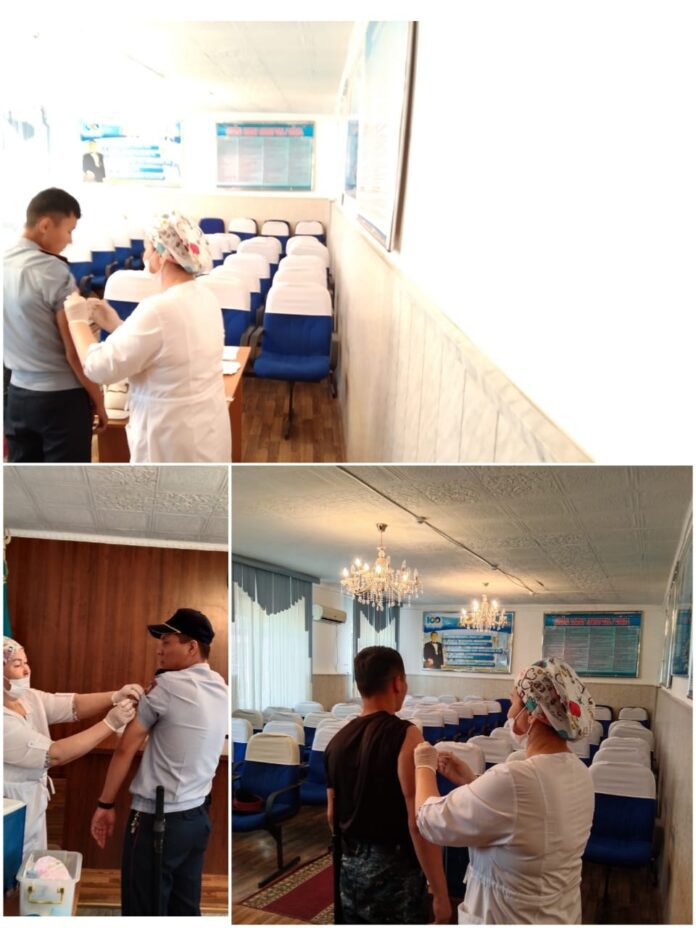 Ал, мұнда республикамыздың әр өңірінен әр түрлі қылмысқа тартылған азаматтар этаппен күнделікті келіп — кетіп жатады. Осы орайда , жұқпалы дерттің алдын алу мақсатында мекемеге жаңадан келіп орналасып жатқан жас мамандар мен басқа да жеке құрам вакцинацияның төртінші этапын қабылдады. Тергеу изоляторының тегеурінді қызметінде арнайы контигентпен жұмыс жасайтын жеке құрамның жұмысы тым қауырт. Сондықтан №6 қалалық емхананадан вакцинатор дәрігер арнайы шақыртылды.